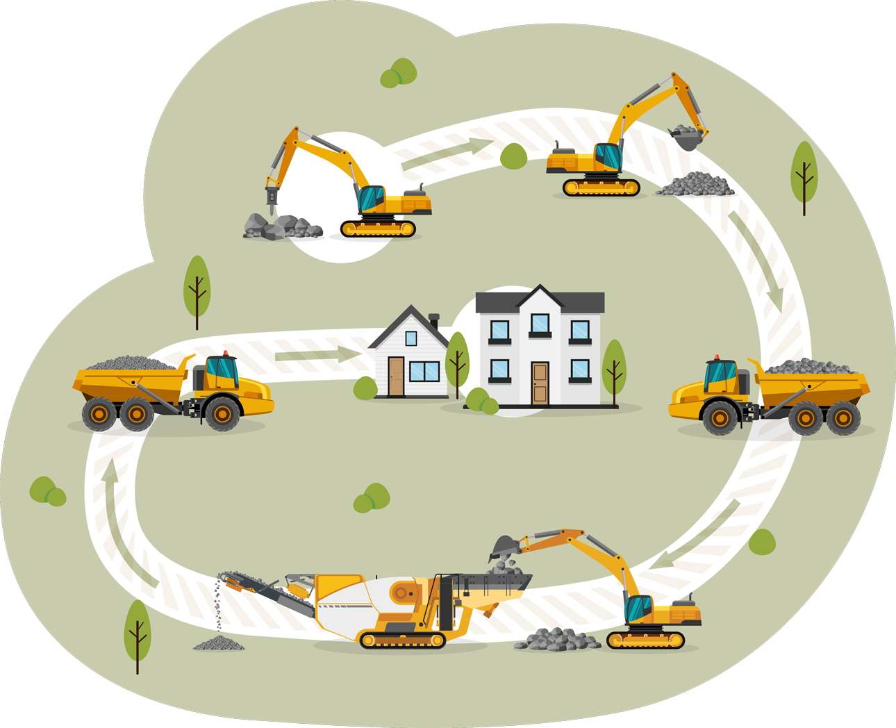 By crushing the rock directly on site, you eliminate the need to transport large quantities of material to and from the recycling plant. This cuts down on fuel consumption and vehicle emissions, reducing the overall carbon footprint of the project.